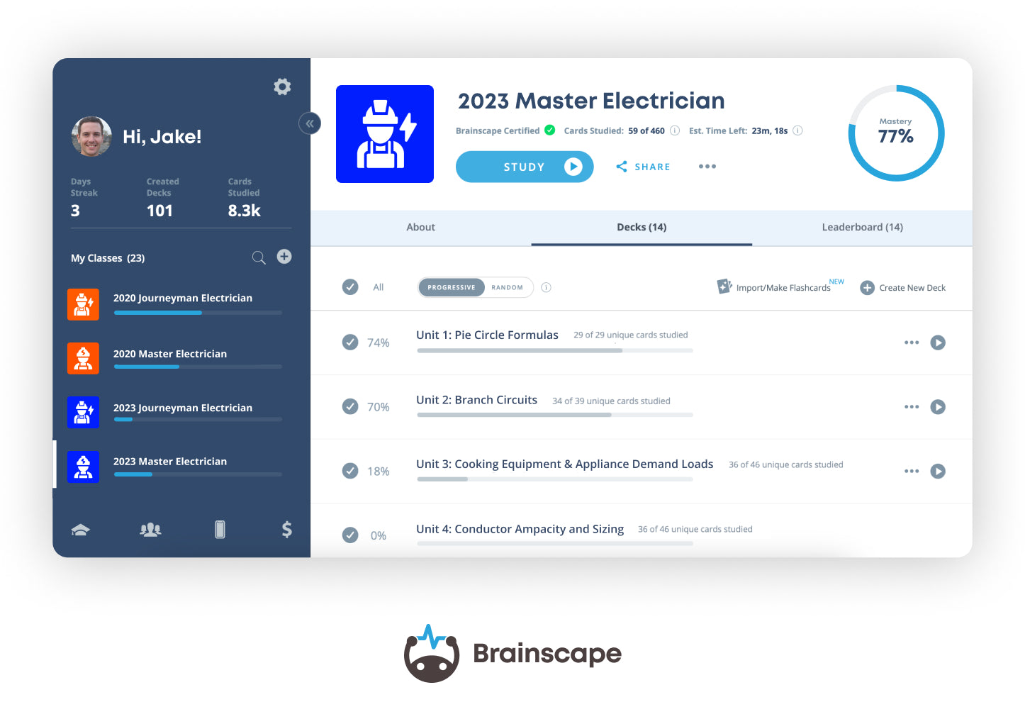 We are thrilled to offer our 2023 Master Electrician flashcards, designed to align with the 2023 National Electrical Code (NEC), on Brainscape — a web and mobile study platform that leverages cognitive science to help you learn as efficiently and painlessly as possible. (You can also use the platform to make your own flashcards if you want!)
