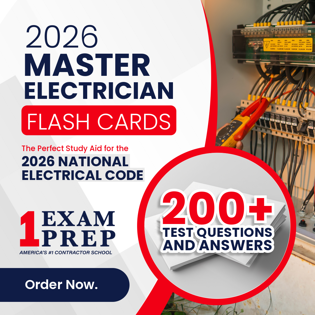 The 2026 Master Electrician Exam Flash Cards 200+ from 1 Exam Prep provide over 250 targeted study questions designed to prepare candidates for the Master Electrician license examination based on the 2026 National Electrical Code (NEC). These flash cards cover service calculations, grounding and bonding, transformers, motor controls, conductor sizing, and overcurrent protection. Each card reinforces NEC references and test-relevant concepts appearing on PSI and state-administered exams, helping electricians strengthen their technical and code-based knowledge required for master-level licensure and certification.