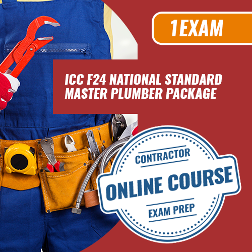Acérquese un paso más a convertirse en un maestro plomero nacional F24 con un curso de preparación para el examen en línea y todas las referencias aprobadas para ayudarlo a superar el examen de libro abierto requerido por ICC.