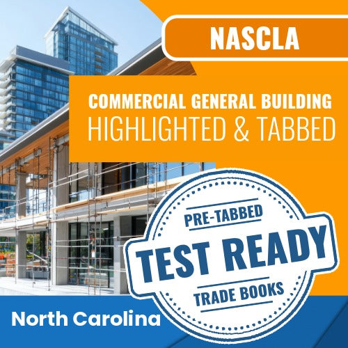 Este paquete incluye todos los libros comerciales resaltados y tabulados para el examen de libro abierto de Contratistas Generales Comerciales de Construcción de NASCLA.