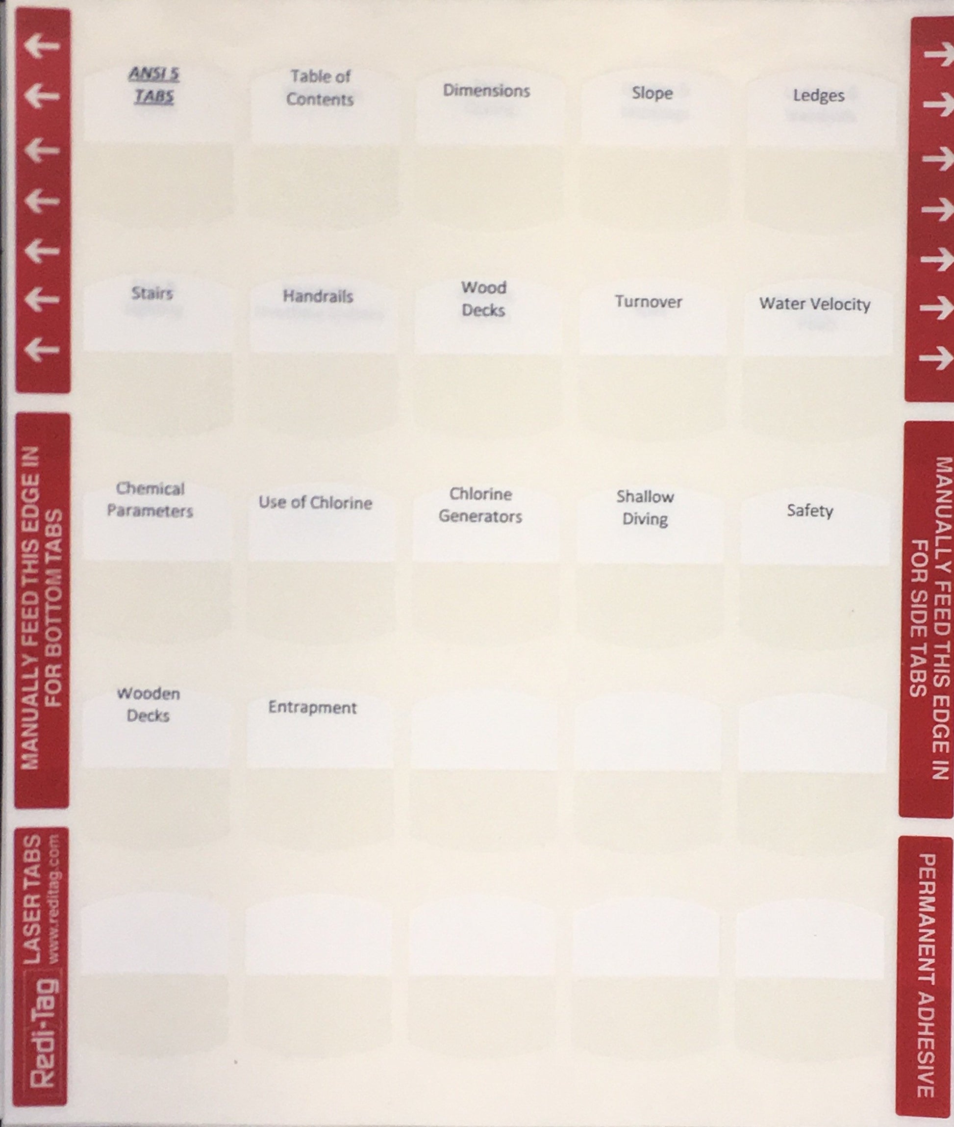 1. Un juego completo de pestañas preimpresas (enviadas por correo) para todos los libros necesarios para el examen de contratista certificado de piscinas comerciales del estado de Florida. Estas pestañas permanentes de referencia rápida le ayudarán a navegar rápida y fácilmente por los libros durante el examen.