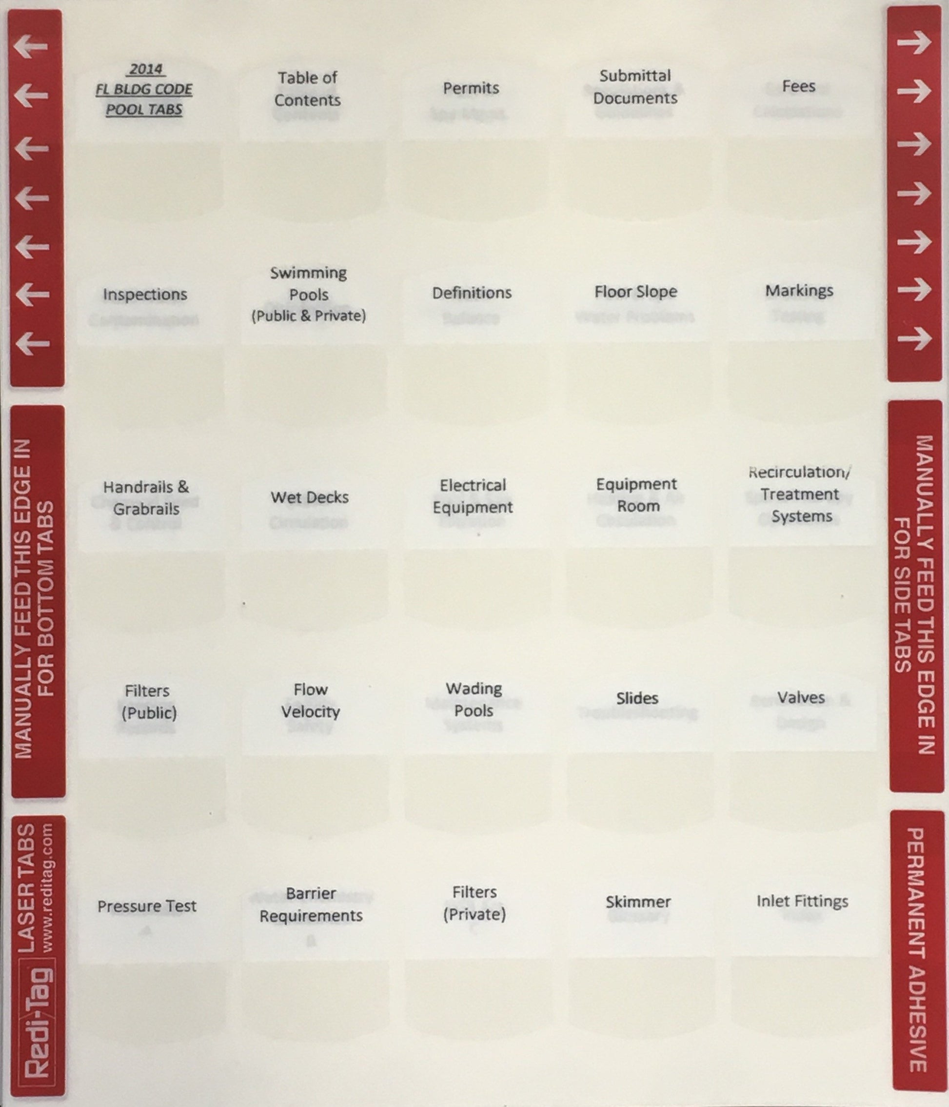 Fichas preimpresas para el paquete de libros de examen para contratistas de piscinas residenciales certificados por el estado de Florida; Solo pestañas (los aspectos más destacadosno están incluidos)