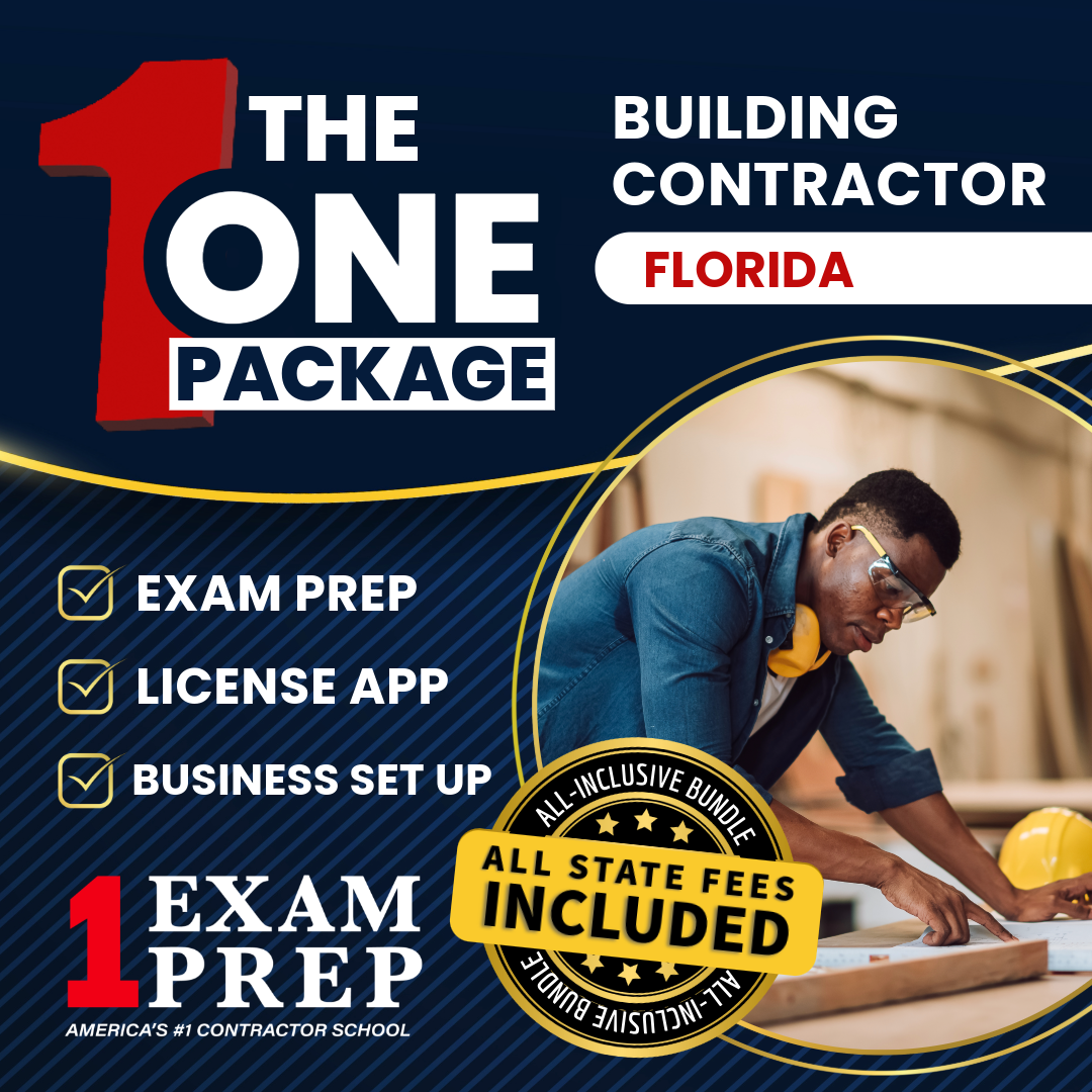 The 1 Package from 1 Exam Prep provides complete preparation for the Florida Building Contractor License, administered under the Florida Department of Business and Professional Regulation (CILB). This all-inclusive solution includes access to the official Building Contractor reference books, the Florida Business and Finance materials, and exam prep modules designed around the state’s open-book examination format. Covering topics mandated by the Florida Building Code, OSHA safety, estimating, and project management, the course aligns with requirements for the CILB Building Contractor certification. The package also integrates business formation guidance and license application support, ensuring full compliance with Florida contractor licensing statutes and NASCLA standards for trade knowledge and business competency.