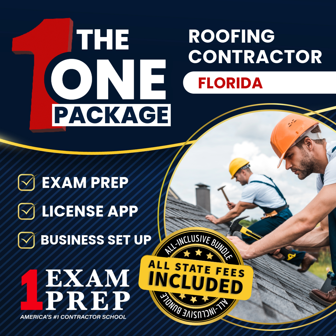 The 1 Package is the ultimate, all-in-one solution for obtaining your Florida Roofing Contractor license and launching your business hassle-free. We take care of everything—from exam prep and book rentals to state fees, corporate setup, EIN filing, workers' comp exemption, credit reports, and five municipal contractor registrations.