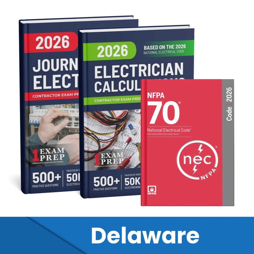 An essential package to passing your Delaware Journeyman Electrician's exam. We offer a 100% satisfaction guarantee. Our Electrician Exam Prep books are #1 Amazon best sellers in their category!