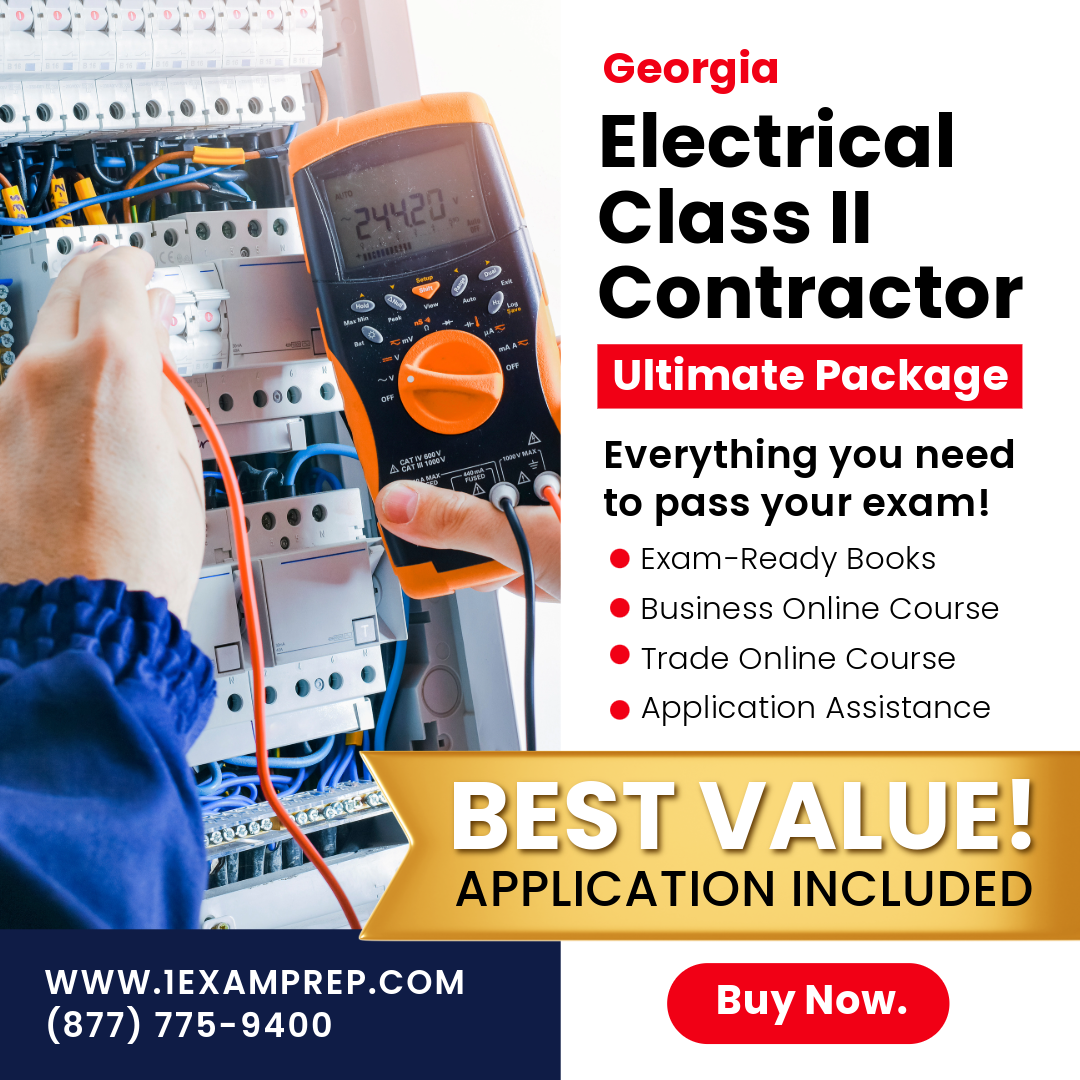 Pass your Georgia Electrical Class II (Unrestricted) licensing exam with confidence using our all-in-one Ultimate Exam Prep Rental Package — built to save you time, money, and stress.