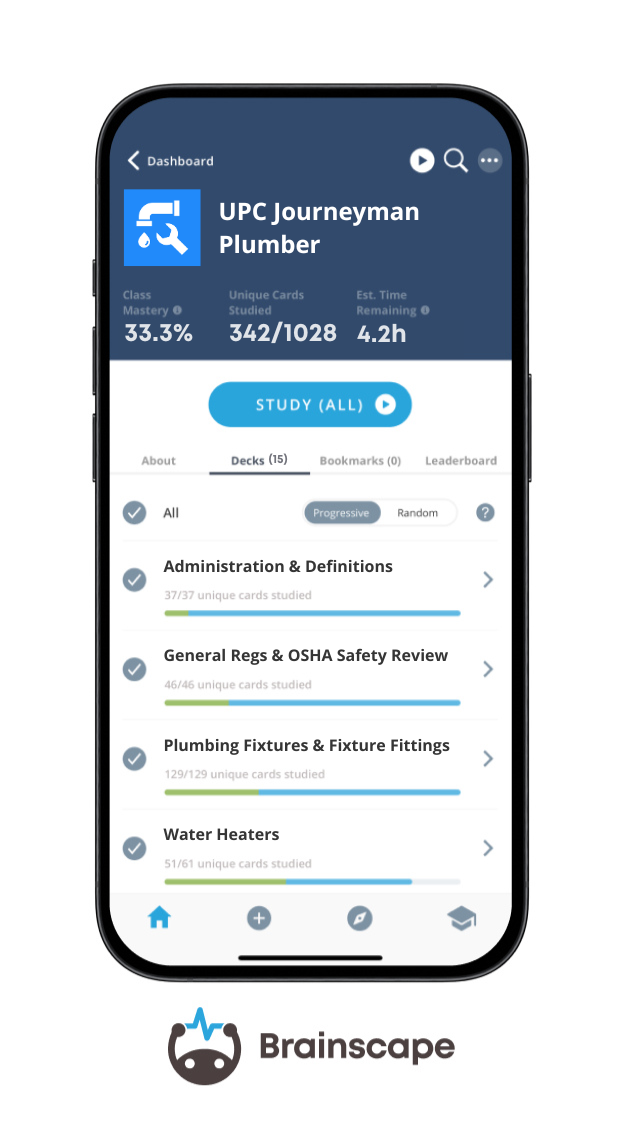 In short, Brainscape is the best UPC Journeyman Plumber exam prep tool on the market.