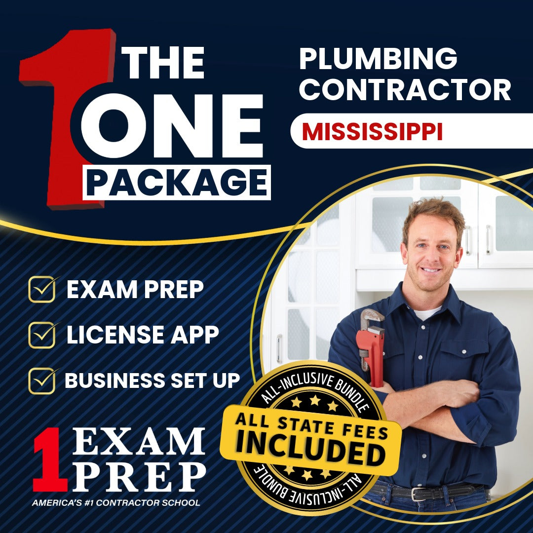 The 1 Package is your all-in-one, stress-free path to becoming a licensed Mississippi Plumbing Contractor and launching your construction or remodeling business legally and confidently.