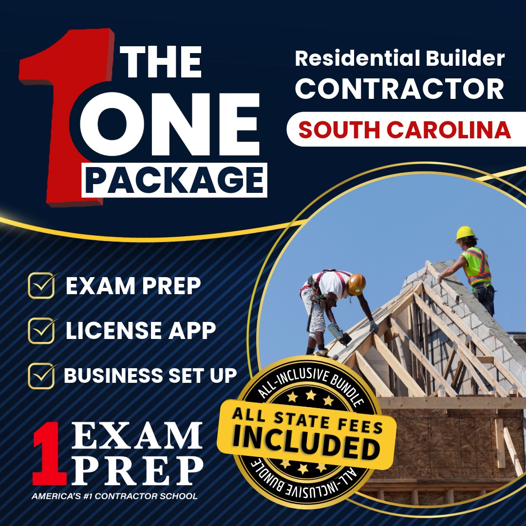 The 1 Package is your all-in-one, stress-free path to becoming a licensed South Carolina Residential Builder Contractor and launching your construction or remodeling business legally and confidently.