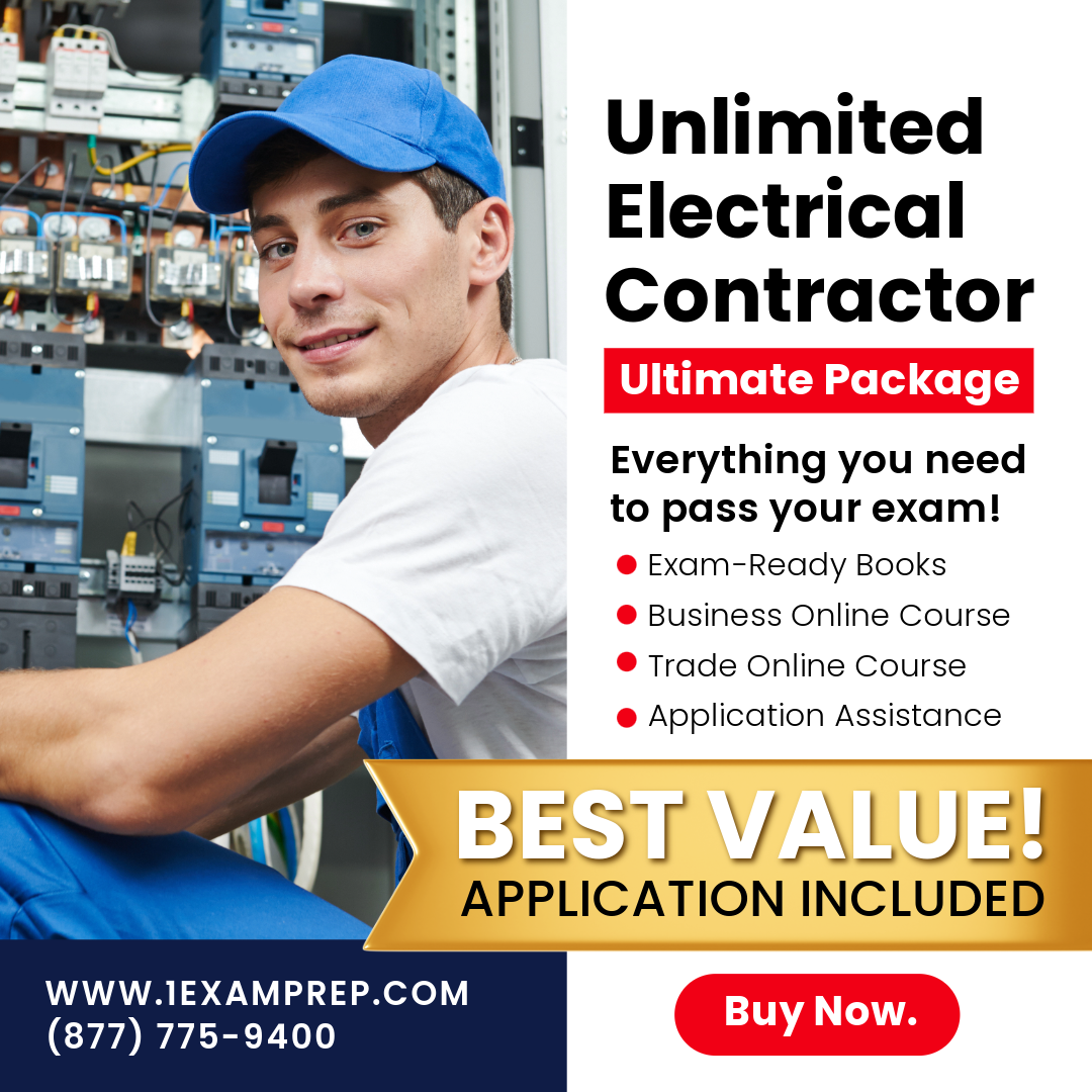 🚀 Secure your Ultimate Exam Prep Package today and take the next step toward your Unlimited Electrical Contractor’s license!