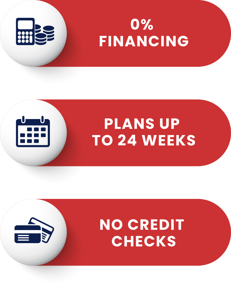 We’re here to help, and we offer 0% financing to get you started. With flexible options up to 24 weeks, our representatives will help you find the best plan for you. Call (877) 775-9400